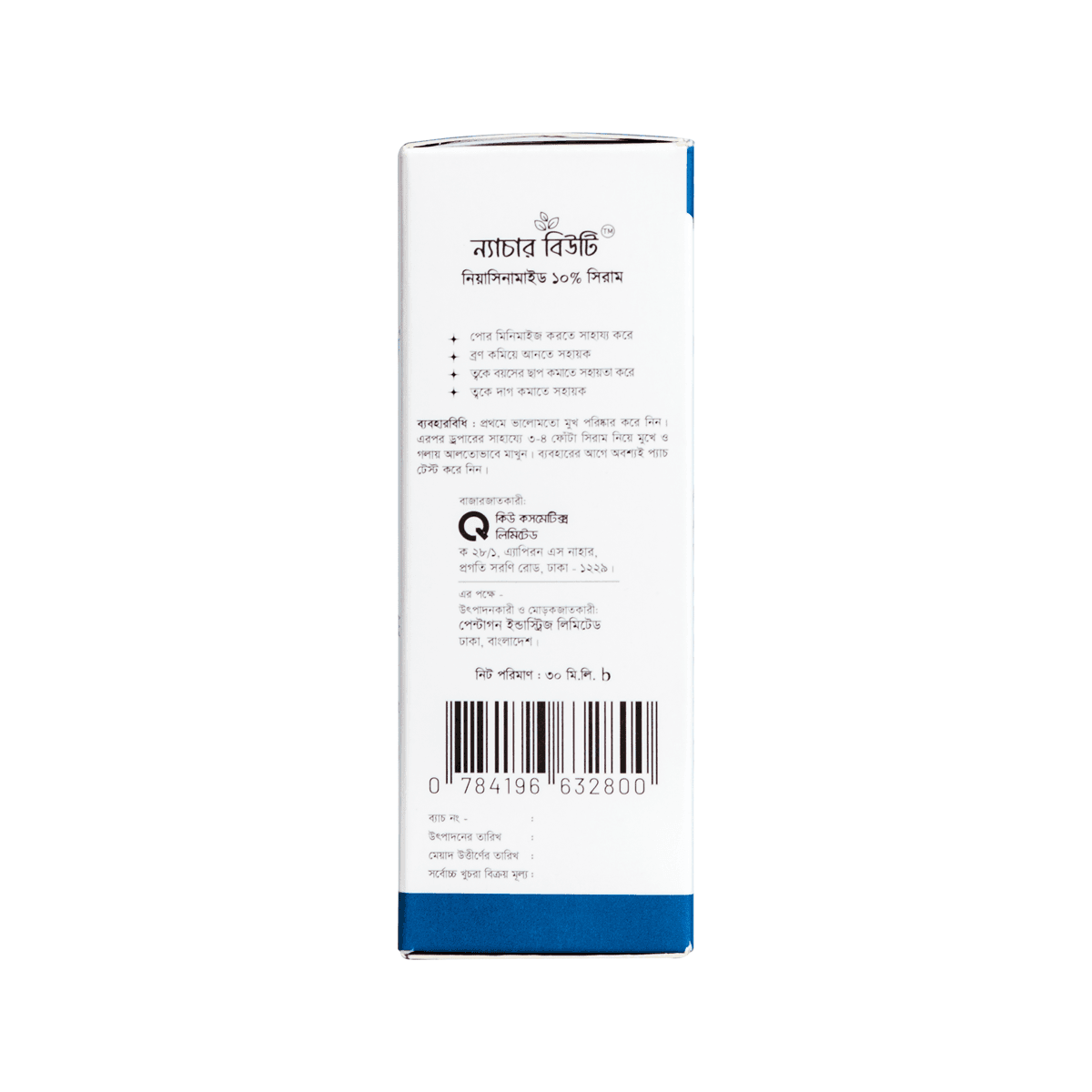 Nature Beauty Niacinamide 10% Serum is a powerful skincare to enhance your complexion. Helps to reduces inflammation, minimizes the appearance of pores, and improves overall skin tone. This serum works to regulate oil production, helping to prevent breakouts while also boosting hydration for a plump & radiant look, making it an essential addition to your daily skincare routine.
