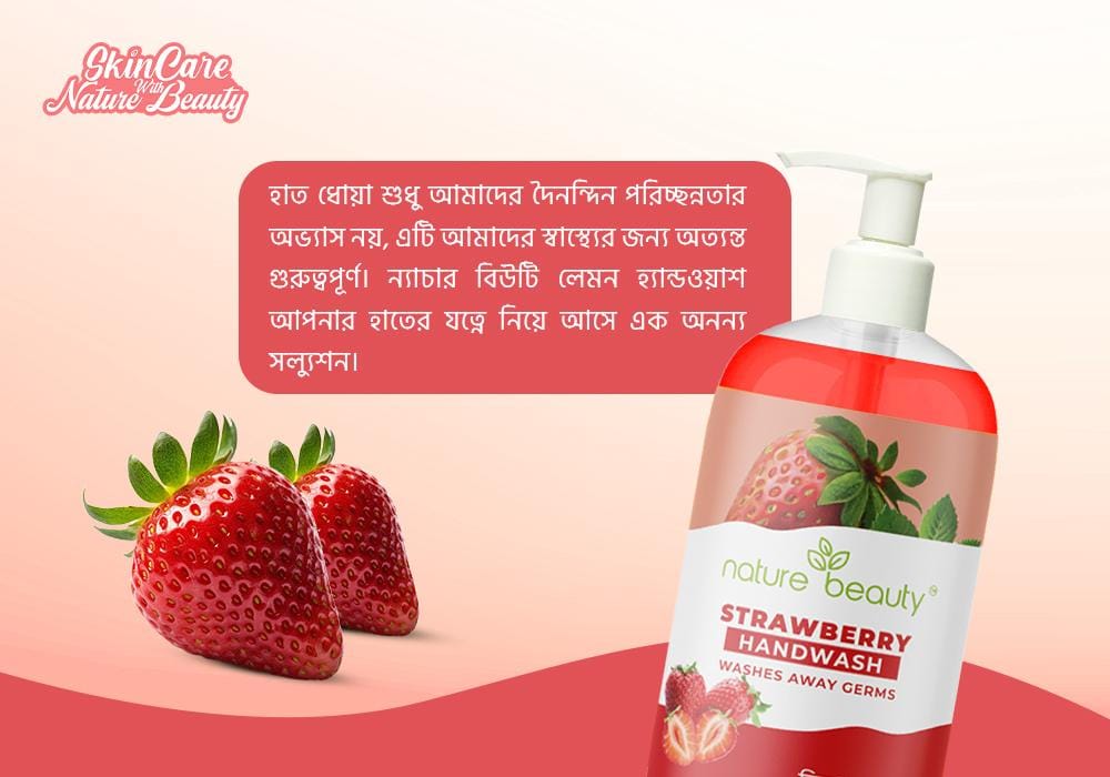 Nature Beauty Strawberry Handwash সত্যিই দারুণ! স্ট্রবেরির মিষ্টি সুবাস হাত ধোয়ার অভিজ্ঞতাকে আনন্দদায়ক করে তোলে। হাত পরিষ্কার রাখে এবং শুষ্ক হয় না।